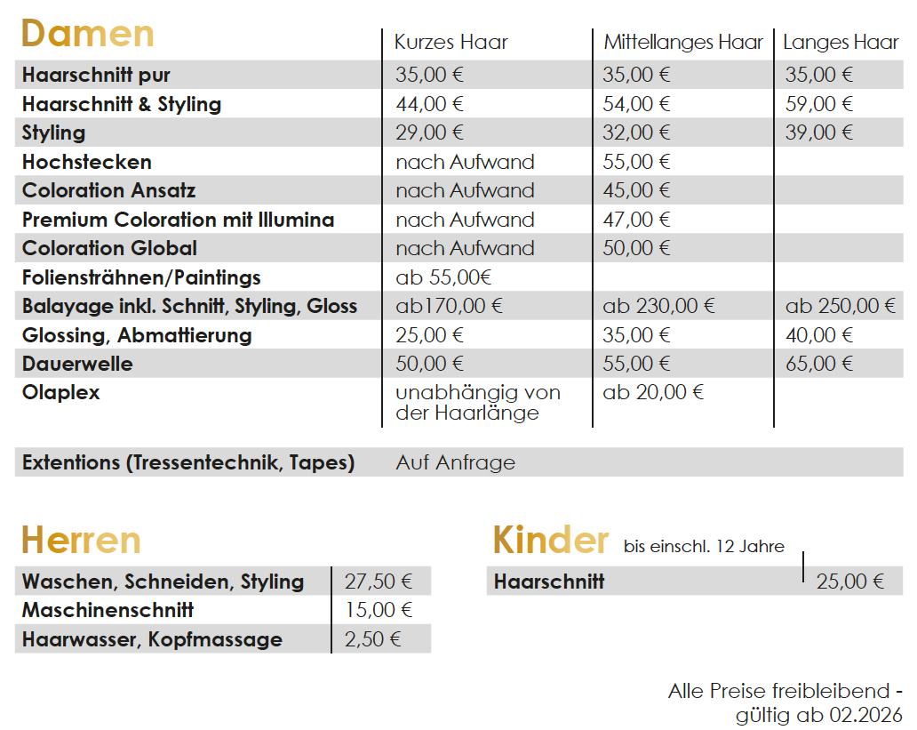 Preisliste 2026